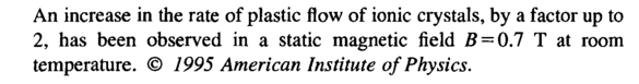 An increase in the rate of plastic flow of ionic crystals, by a factor up to 2, has been observed in a static magnetic field В = 0.7 Τ at room temperature. © 1995 American Institute of Physics.