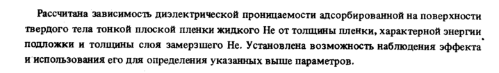 Рассчитана зависимость диэлектрической проницаемости адсорбированной на поверхности твердого тела тонкой плоской пленки жидкого Не от толщины пленки, характерной энергии подложки и толщины слоя замерзшего Не. Установлена возможность наблюдения эффекта и использования его для определения указанных выше параметров.