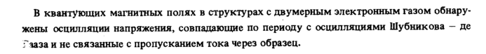 В квантующих магнитных полях в структурах с двумерным электронным газом обнаружены осцилляции напряжения, совпадающие по периоду с осцилляциями Шубникова де Гааза и не связанные с пропусканием тока через образец.