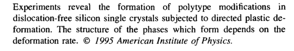 Experiments reveal the formation of polytype modifications in dislocation-free silicon single crystals subjected to directed plastic deformation. The structure of the phases which form depends on the deformation rate. © 1995 American Institute of Physics.
