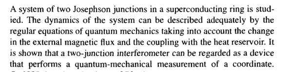 A system of two Josephson junctions in a superconducting ring is studied. The dynamics of the system can be described adequately by the regular equations of quantum mechanics taking into account the change in the external magnetic flux and the coupling with the heat reservoir. It is shown that a two-junction interferometer can be regarded as a device that performs a quantum-mechanical measurement of a coordinate.
