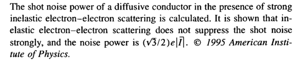 The shot noise power of a diffusive conductor in the presence of strong inelastic electron-electron scattering is calculated. It is shown that inelastic electron-electron scattering does not suppress the shot noise strongly, and the noise power is (л/3/2)е|/1. © 1995 American Institute of Physics.