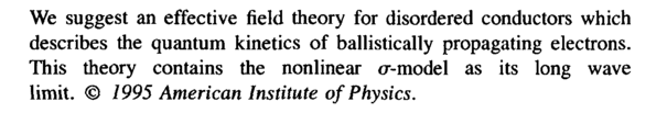 We suggest an effective field theory for disordered conductors which describes the quantum kinetics of ballistically propagating electrons. This theory contains the nonlinear σ-model as its long wave limit. © 1995 American Institute of Physics.