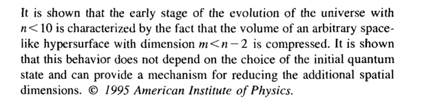 It is shown that the early stage of the evolution of the universe with η < 10 is characterized by the fact that the volume of an arbitrary spacelike hypersurface with dimension m<n — 2 is compressed. It is shown that this behavior does not depend on the choice of the initial quantum state and can provide a mechanism for reducing the additional spatial dimensions. © 1995 American Institute of Physics.