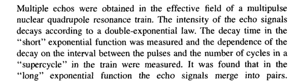 Multiple echos were obtained in the effective field of a multipulse nuclear quadrupole resonance train. The intensity of the echo signals decays according to a double-exponential law. The decay time in the "short" exponential function was measured and the dependence of the decay on the interval between the pulses and the number of cycles in a "supercycle" in the train were measured. It was found that in the "long" exponential function the echo signals merge into pairs.