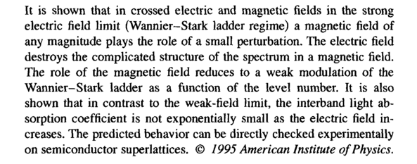 It is shown that in crossed electric and magnetic fields in the strong electric field limit (Wannier-Stark ladder regime) a magnetic field of any magnitude plays the role of a small perturbation. The electric field destroys the complicated structure of the spectrum in a magnetic field. The role of the magnetic field reduces to a weak modulation of the Wannier-Stark ladder as a function of the level number. It is also shown that in contrast to the weak-field limit, the interband light absorption coefficient is not exponentially small as the electric field increases. The predicted behavior can be directly checked experimentally on semiconductor superlattices. © 1995 American Institute of Physics.