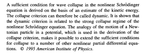 A sufficient condition for wave collapse in the nonlinear Schrodinger equation is derived on the basis of an estimate of the kinetic energy. The collapse criterion can therefore be called dynamic. It is shown that the dynamic criterion is related to the strong collapse regime of the nonlinear Schrodinger equation. The analogy of the motion of a Newtonian particle in a potential, which is used in the derivation of the collapse criterion, makes it possible to extend the sufficient conditions for collapse to a number of other nonlinear partial differential equations. © 1995 American Institute of Physics.