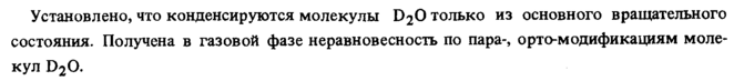 Установлено, что конденсируются молекулы D2O только из основного вращательного состояния. Получена в газовой фазе неравновесность по пара-, ортом од ификациям молекул D2O.
