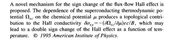 A novel mechanism for the sign change of the flux-flow Hall effect is proposed. The dependence of the superconducting thermodynamic potential ilsc on the chemical potential μ produces a topological contribution to the Hall conductivity Saxy = ~{dilscld^eclB, which may lead to a double sign change of the Hall effect as a function of temperature. © 1995 American Institute of Physics.