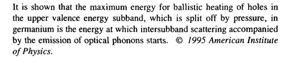 It is shown that the maximum energy for ballistic heating of holes in the upper valence energy subband, which is split off by pressure, in germanium is the energy at which intersubband scattering accompanied by the emission of optical phonons starts. © 7995 American Institute of Physics.