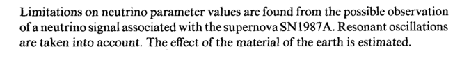 Limitations on neutrino parameter values are found from the possible observation of a neutrino signal associated with the supernova SN1987A. Resonant oscillations are taken into account. The effect of the material of the earth is estimated.
