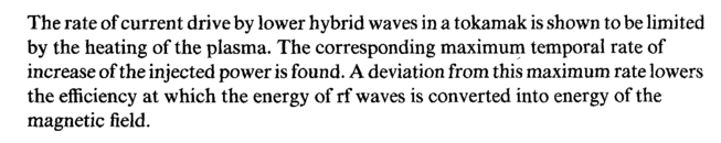 The rate of current drive by lower hybrid waves in a tokamak is shown to be limited by the heating of the plasma. The corresponding maximum temporal rate of increase of the injected power is found. A deviation from this maximum rate lowers the efficiency at which the energy of rf waves is converted into energy of the magnetic field.