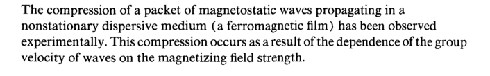 The compression of a packet of magnetostatic waves propagating in a nonstationary dispersive medium (a ferromagnetic film) has been observed experimentally. This compression occurs as a result of the dependence of the group velocity of waves on the magnetizing field strength.