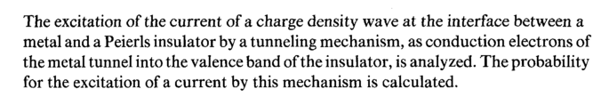 The excitation of the current of a charge density wave at the interface between a metal and a Peierls insulator by a tunneling mechanism, as conduction electrons of the metal tunnel into the valence band of the insulator, is analyzed. The probability for the excitation of a current by this mechanism is calculated.