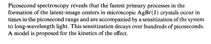 Picosecond spectroscopy reveals that the fastest primary processes in the formation of the latent-image centers in microscopic AgBr(I) crystals occur in times in the picosecond range and are accompanied by a sensitization of the system to long-wavelength light. This sensitization decays over hundreds of picoseconds. A model is proposed for the kinetics of the effect.