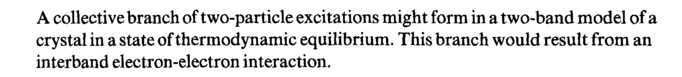 A collective branch of two-particle excitations might form in a two-band model of a crystal in a state of thermodynamic equilibrium. This branch would result from an interband electron-electron interaction.
