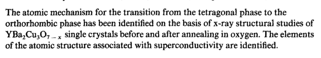 The atomic mechanism for the transition from the tetragonal phase to the orthorhombic phase has been identified on the basis of x-ray structural studies of YBa2Cu307 _ x single crystals before and after annealing in oxygen. The elements of the atomic structure associated with superconductivity are identified.