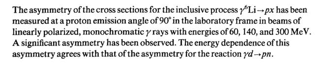 The asymmetry of the cross sections for the inclusive process ^Li -* px has been measured at a proton emission angle of 90° in the laboratory frame in beams of linearly polarized, monochromatic frays with energies of60,140, and 300 MeV. A significant asymmetry has been observed. The energy dependence of this asymmetry agrees with that of the asymmetry for the reaction yd^pn.