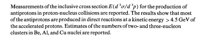 Measurements of the inclusive cross section E{d ъа/й ър) for the production of antiprotons in proton-nucleus collisions are reported. The results show that most of the antiprotons are produced in direct reactions at a kinetic energy > 4.5 GeV of the accelerated protons. Estimates of the numbers of twoand three-nucleon clusters in Be, Al, and Cu nuclei are reported.