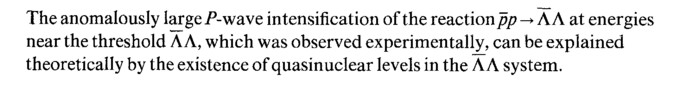 The anomalously large Pwave intensification of the reaction pp -> ΛΛ at energies near the threshold ΛΛ, which was observed experimentally, can be explained theoretically by the existence of quasinuclear levels in the ΛΛ system.