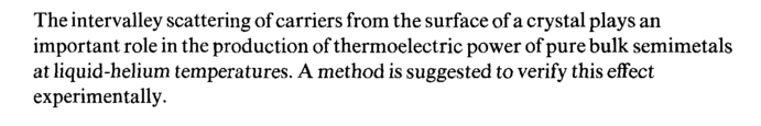 The intervalley scattering of carriers from the surface of a crystal plays an important role in the production of thermoelectric power of pure bulk semimetals at liquid-helium temperatures. A method is suggested to verify this effect experimentally.