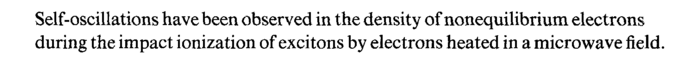 Self-oscillations have been observed in the density of nonequilibrium electrons during the impact ionization of excitons by electrons heated in a microwave field.