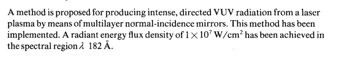 A method is proposed for producing intense, directed VUV radiation from a laser plasma by means of multilayer normal-incidence mirrors. This method has been implemented. A radiant energy flux density of 1Χ 107 W/cm2 has been achieved in the spectral region λ 182 A.