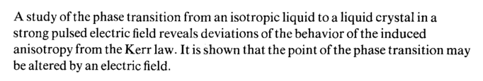A study of the phase transition from an isotropic liquid to a liquid crystal in a strong pulsed electric field reveals deviations of the behavior of the induced anisotropy from the Kerr law. It is shown that the point of the phase transition may be altered by an electric field.