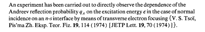 An experiment has been carried out to directly observe the dependence of the Andreev reflection probability qA on the excitation energy e in the case of normal incidence on an n-s interface by means of transverse electron focusing {V. S. Tsoi, Pis'maZh. Eksp. Teor. Fiz. 19,114 (1974) [JETP Lett. 19,70 (1974) ]}.