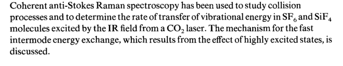 Coherent anti-Stokes Raman spectroscopy has been used to study collision processes and to determine the rate of transfer of vibrational energy in SF6 and SiF4 molecules excited by the IR field from a C02 laser. The mechanism for the fast intermode energy exchange, which results from the effect of highly excited states, is discussed.