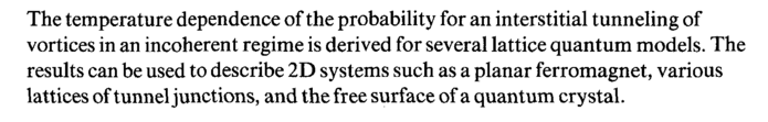 The temperature dependence of the probability for an interstitial tunneling of vortices in an incoherent regime is derived for several lattice quantum models. The results can be used to describe 2D systems such as a planar ferromagnet, various lattices of tunnel junctions, and the free surface of a quantum crystal.