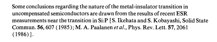 Some conclusions regarding the nature of the metal-insulator transition in uncompensated semiconductors are drawn from the results of recent ESR measurements near the transition in Si:P [S. Ikehata and S. Kobayashi, Solid State Commun. 56,607 (1985); M. A. Paalanen etal, Phys. Rev. Lett. 57,2061 (1986)].