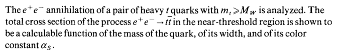 The e+e~ annihilation of a pair of heavy t quarks with mt >MW is analyzed. The total cross section of the process e+e~ -> it in the near-threshold region is shown to be a calculable function of the mass of the quark, of its width, and of its color constant as.