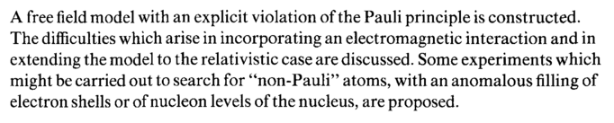 A free field model with an explicit violation of the Pauli principle is constructed. The difficulties which arise in incorporating an electromagnetic interaction and in extending the model to the relativistic case are discussed. Some experiments which might be carried out to search for "non-Pauli" atoms, with an anomalous filling of electron shells or of nucleon levels of the nucleus, are proposed.