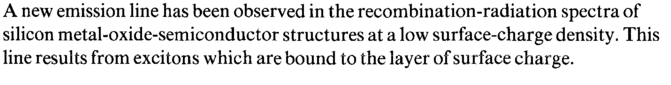 A new emission line has been observed in the recombination-radiation spectra of silicon metal-oxide-semiconductor structures at a low surface-charge density. This line results from excitons which are bound to the layer of surface charge.