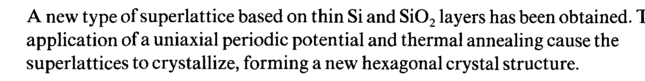 A new type of superlattice based on thin Si and Si02 layers has been obtained. 1 application of a uniaxial periodic potential and thermal annealing cause the superlattices to crystallize, forming a new hexagonal crystal structure.