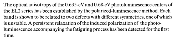 The optical anisotropy of the 0.635-eV and 0.68-eV photoluminescence centers of the EL2 series has been established by the polarized-luminescence method. Each band is shown to be related to two defects with different symmetries, one of which is unstable. A persistent relaxation of the induced polarization of the photo-luminescence accompanying the fatiguing process has been detected for the first time.