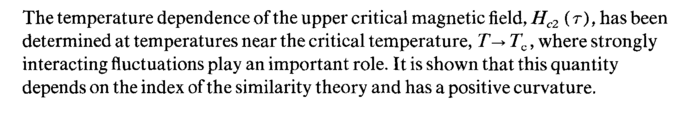 The temperature dependence of the upper critical magnetic field, Hc2 (τ), has been determined at temperatures near the critical temperature, Tc, where strongly interacting fluctuations play an important role. It is shown that this quantity depends on the index of the similarity theory and has a positive curvature.
