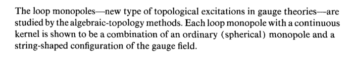 The loop monopoles—new type of topological excitations in gauge theories—are studied by the algebraic-topology methods. Each loop monopole with a continuous kernel is shown to be a combination of an ordinary (spherical) monopole and a string-shaped configuration of the gauge field.