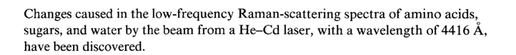 Changes caused in the low-frequency Raman-scattering spectra of amino acids, sugars, and water by the beam from a He-Cd laser, with a wavelength of 4416 A, have been discovered.