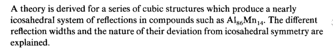A theory is derived for a series of cubic structures which produce a nearly icosahedral system of reflections in compounds such as Al86Mn14. The different reflection widths and the nature of their deviation from icosahedral symmetry are explained.