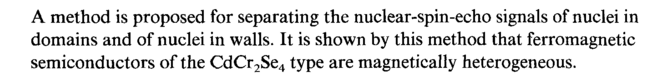 A method is proposed for separating the nuclear-spin-echo signals of nuclei in domains and of nuclei in walls. It is shown by this method that ferromagnetic semiconductors of the CdCr2Se4 type are magnetically heterogeneous.