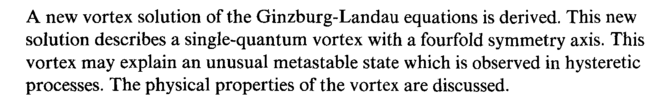 A new vortex solution of the Ginzburg-Landau equations is derived. This new solution describes a single-quantum vortex with a fourfold symmetry axis. This vortex may explain an unusual metastable state which is observed in hysteretic processes. The physical properties of the vortex are discussed.