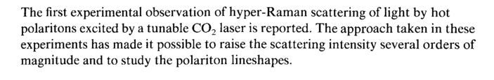 The first experimental observation of hyper-Raman scattering of light by hot polaritons excited by a tunable C02 laser is reported. The approach taken in these experiments has made it possible to raise the scattering intensity several orders of magnitude and to study the polariton lineshapes.