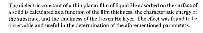 The dielectric constant of a thin planar film of liquid He adsorbed on the surface of a solid is calculated as a function of the film thickness, the characteristic energy of the substrate, and the thickness of the frozen He layer. The effect was found to be observable and useful in the determination of the aforementioned parameters.
