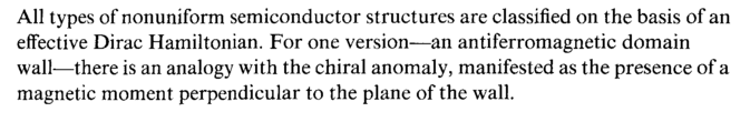 All types of nonuniform semiconductor structures are classified on the basis of an effective Dirac Hamiltonian. For one version—an antiferromagnetic domain wall—there is an analogy with the chiral anomaly, manifested as the presence of a magnetic moment perpendicular to the plane of the wall.
