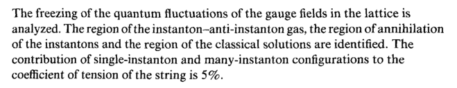 The freezing of the quantum fluctuations of the gauge fields in the lattice is analyzed. The region of the instanton-anti-instanton gas, the region of annihilation of the instantons and the region of the classical solutions are identified. The contribution of single-instanton and many-instanton configurations to the coefficient of tension of the string is 5%.