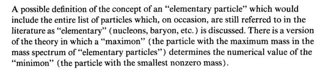 A possible definition of the concept of an "elementary particle" which would include the entire list of particles which, on occasion, are still referred to in the literature as "elementary" (nucleons, baryon, etc.) is discussed. There is a version of the theory in which a "maximon" (the particle with the maximum mass in the mass spectrum of "elementary particles") determines the numerical value of the "minimon" (the particle with the smallest nonzero mass).