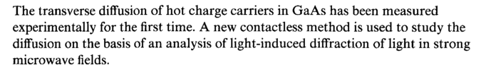 The transverse diffusion of hot charge carriers in GaAs has been measured experimentally for the first time. A new contactless method is used to study the diffusion on the basis of an analysis of light-induced diffraction of light in strong microwave fields.