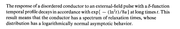 The response of a disordered conductor to an external-field pulse with a ^-function temporal profile decays in accordance with exp [ — {\n2t)/%u] at long times t. This result means that the conductor has a spectrum of relaxation times, whose distribution has a logarithmically normal asymptotic behavior.